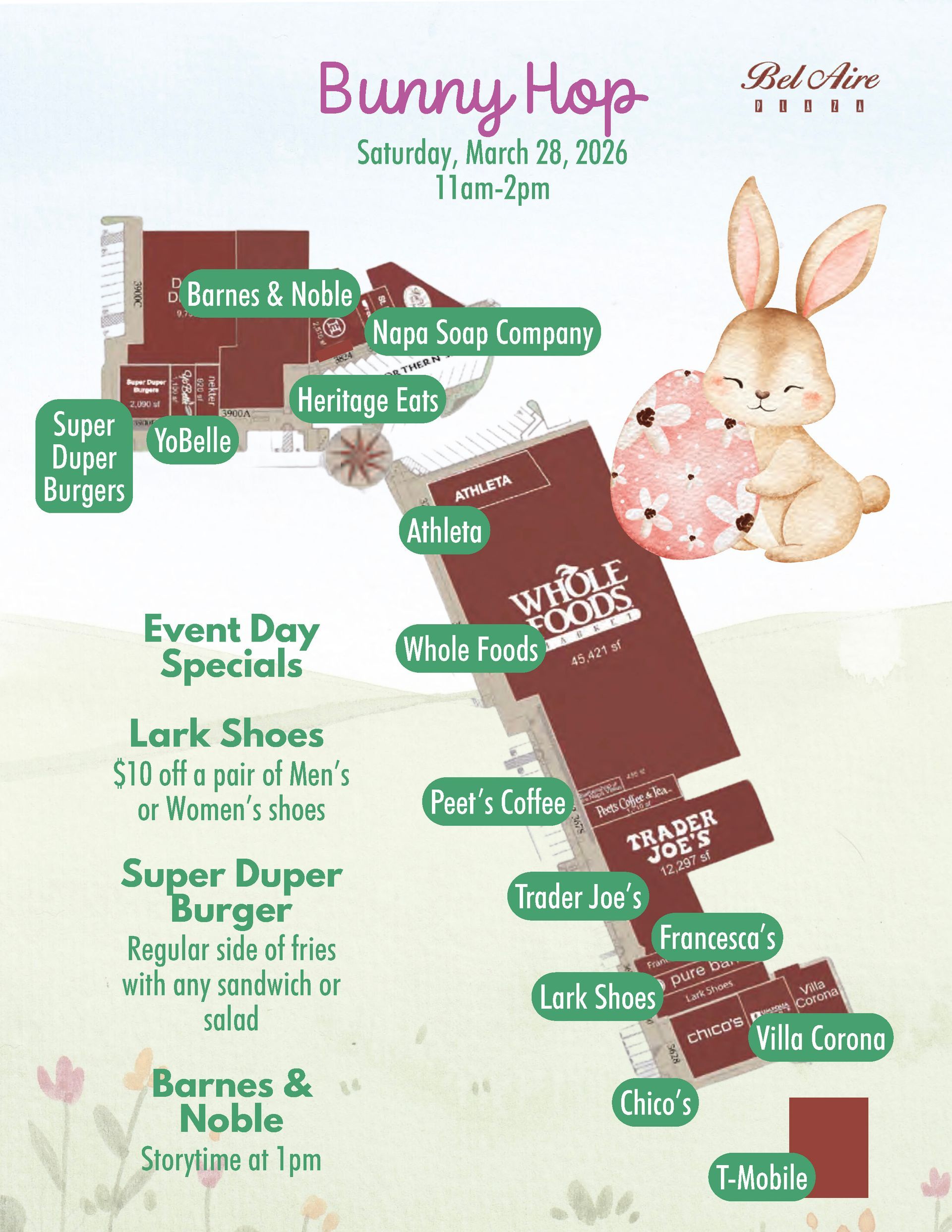 π Egg Hunt around the plaza with participating merchants (bring your own basket)